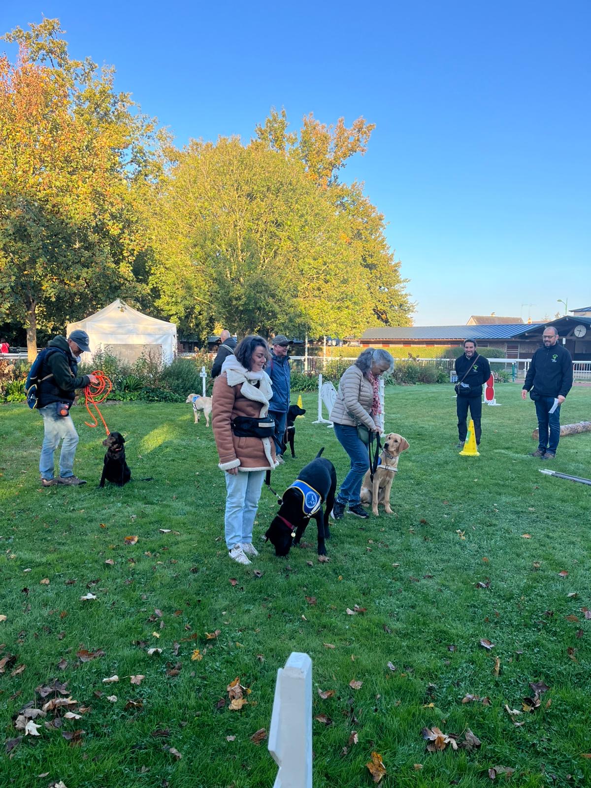 Vendredi 9h15 - 9h45 : séance d’obéissance collective réalisée par nos familles d’accueil bénévoles et nos futurs chiens guides, accompagnés de nos éducateurs professionnels.